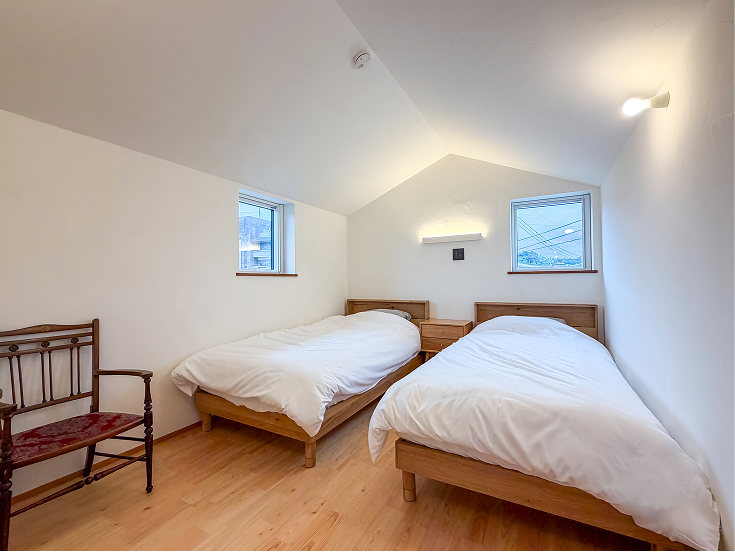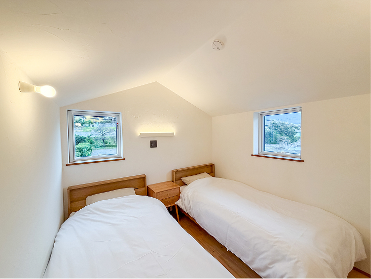 ツインの寝室。※3人以上宿泊時のみ開放。
