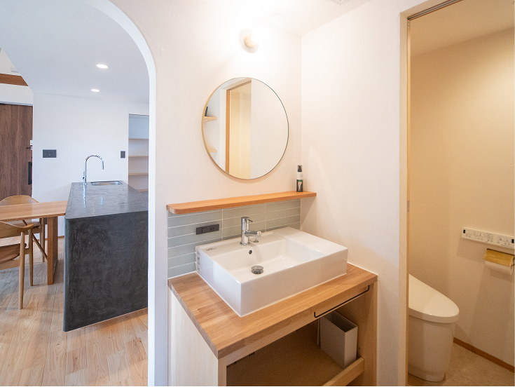 洗面コーナーとトイレ。脱衣室は別途設けています。
